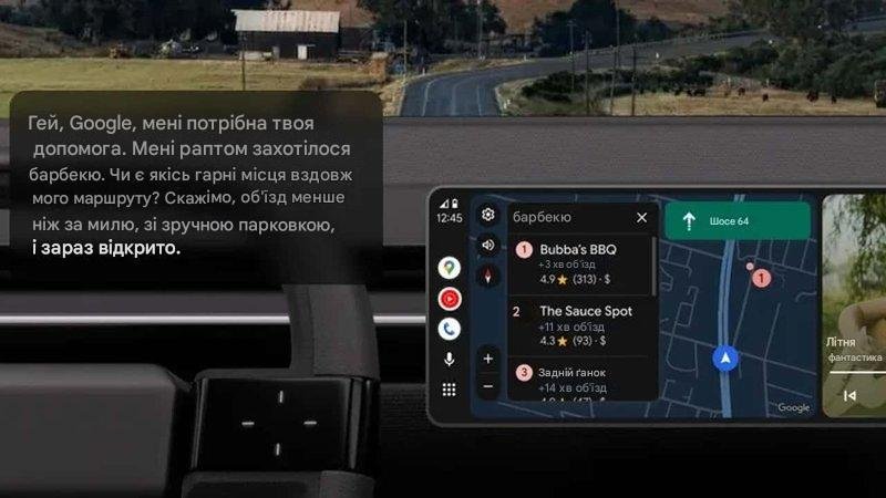 У промо-відео Google продемонстрував, що Gemini в Android Auto може знаходити адреси в електронних листах і одразу ставити їх як маршрут у Google Maps. Водій може шукати конкретні місця - наприклад піцерії з відомим соусом або квіткові магазини, де продають певний вид квітів.