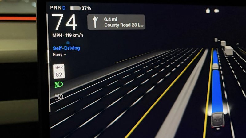 Починаючи з цього оновлення, Tesla видалила традиційну іконку Autopilot і тепер відображає слово “Self-Driving” синім кольором, коли система активна. Під написом користувачі можуть перемикатися між профілями FSD: Chill, Standard, Hurry або новим режимом Sloth Mode.