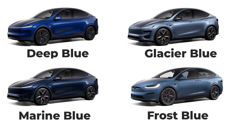 Новий відтінок Marine Blue прийшов на зміну старішому Deep Blue Metallic і відрізняється більш темною, насиченою гамою. Ціна — €1,300 (приблизно $1,500), і він доступний виключно для Model Y Premium (раніше RWD LR та AWD LR) та версій Performance. Базова версія Model Y залишається доступною лише в трьох кольорах: Pearl White Multicoat, Diamond Black та Stealth Grey.